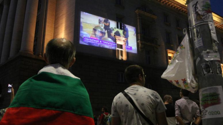 Върху фасадата на парламента бяха прожектирани масово разпространявани в социалните мрежи кадри с прилагане на груба полицейска сила срещу протестиращи по време акцията „Велико народно въстание“ на 2 септември. Прозвучаха и добре познати аудиозаписи, в които се предполага, че се чува гласът на премиера.
