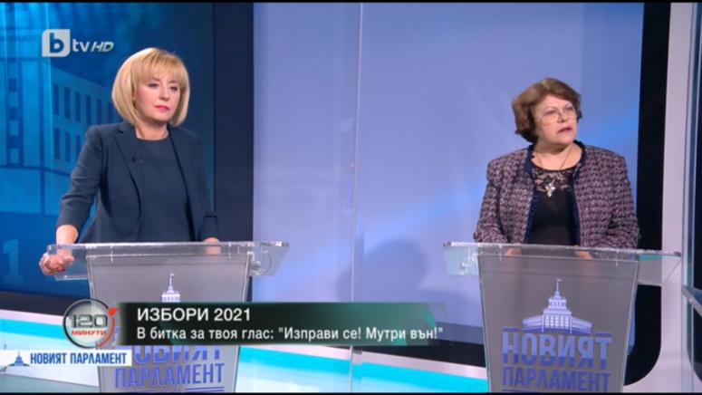 Това заяви Мая Манолова от коалицията „Изправи се! Мутри вън!“ в предаването „120 минути“ по бТВ в рубриката на Мария Цънцарова, където гостува заедно с Татяна Дончева – председател на Движение 21.