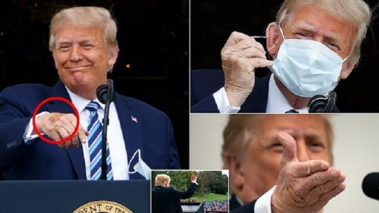 Тръмп твърди, че се е възстановил и вече не е на лекарства срещу коронавируса, но последните снимки предизвикаха спекулации, че той може да получава интравенозни лекарства. Разбира се, също така е възможно това да е някаква драскотина или малка рана, покрита с лепенка.