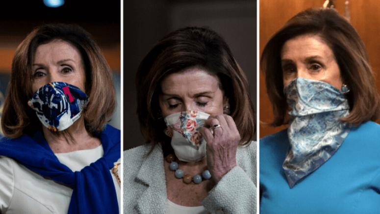 Първият отказва да носи маски, втората ги подбира според цвета на тоалета, обаче, по-скоро, завързва шалчета около лицето. С което предизвика одобрението на колегите си - например, в средата на май Хилари Клинтън публикува в „Инстаграм“ снимка на Пелоси в розов костюм на панталон и същия цвят маска. "Лидерът на мнозинството в Конгреса и комбинацията от маска с костюм", така Клинтън подписа снимката.