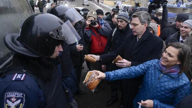 Говори се и за известния разговор между Нуланд и тогавашния посланик на САЩ в Украйна Джефри Пайът, състоял се на 4 февруари 2014 г., по време на който главният куратор на Майдана, без никакво смущение, даде нареждания кой може да бъде назначен за министър-председател на Украйна (Арсений Яценюк) и кого е по-добре да не допускаме до властта (Виталий Кличко, Олег Тягнибок).