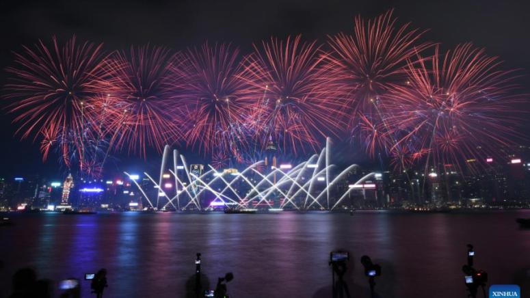 „Надявам се научно-техническото развитие на Хонконг да се изстреля в небето, както направиха днес тези фойерверки“, каза младият предприемач Лиу, който гледаше шоуто от Централния фериботен терминал.
