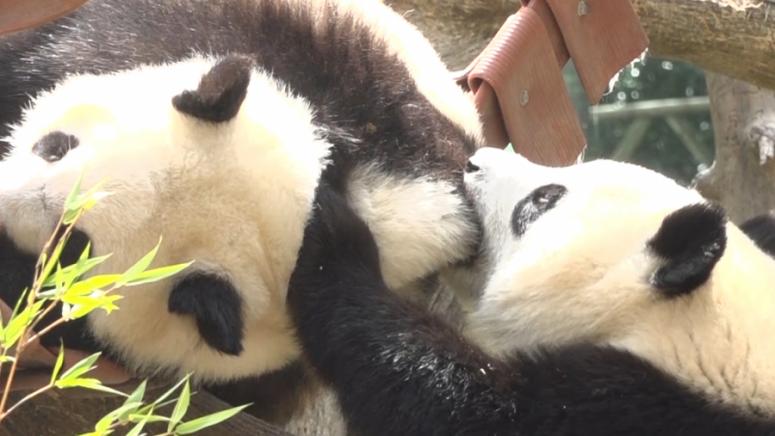 Двете мъжки панди се родиха през 2021 г. и тежаха само 150 г, но сега всяка от тях е около 70 кг. Когато станат на четири години, теглото им ще достигне около 400 кг.
