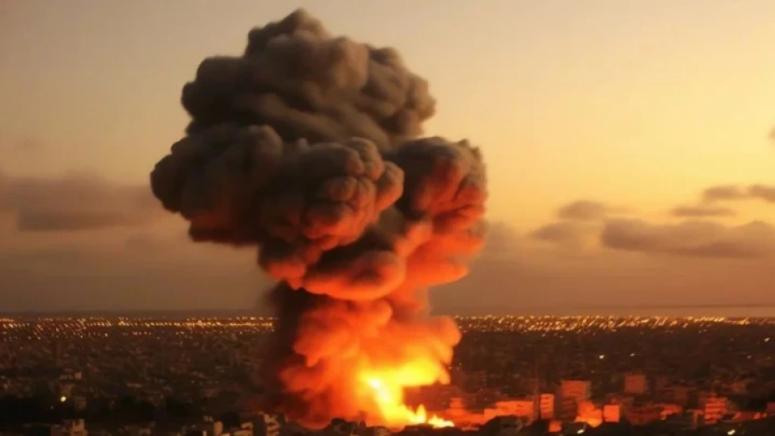Кадрите показват как огнени „гъби“ буквално растат пред очите ни над града.